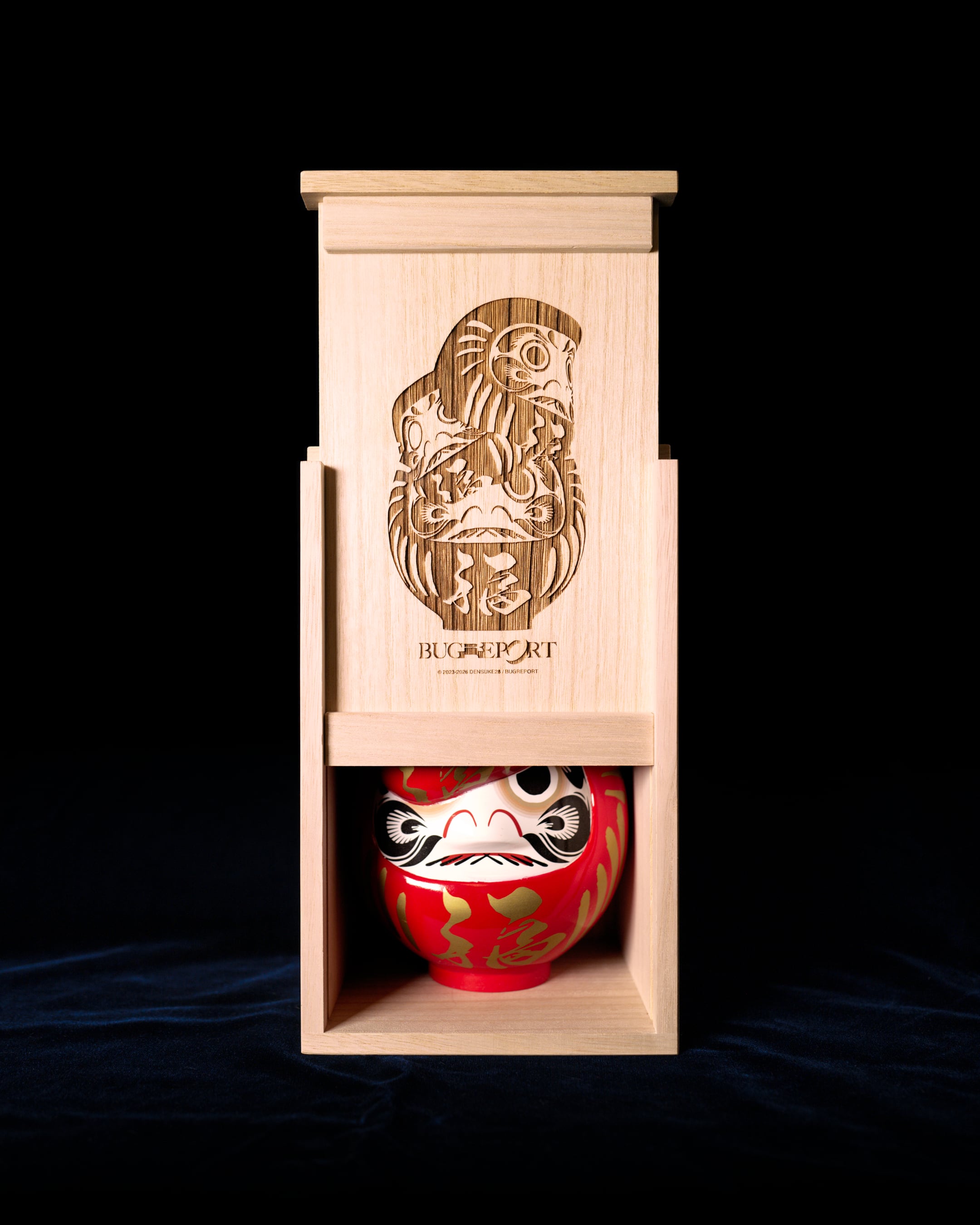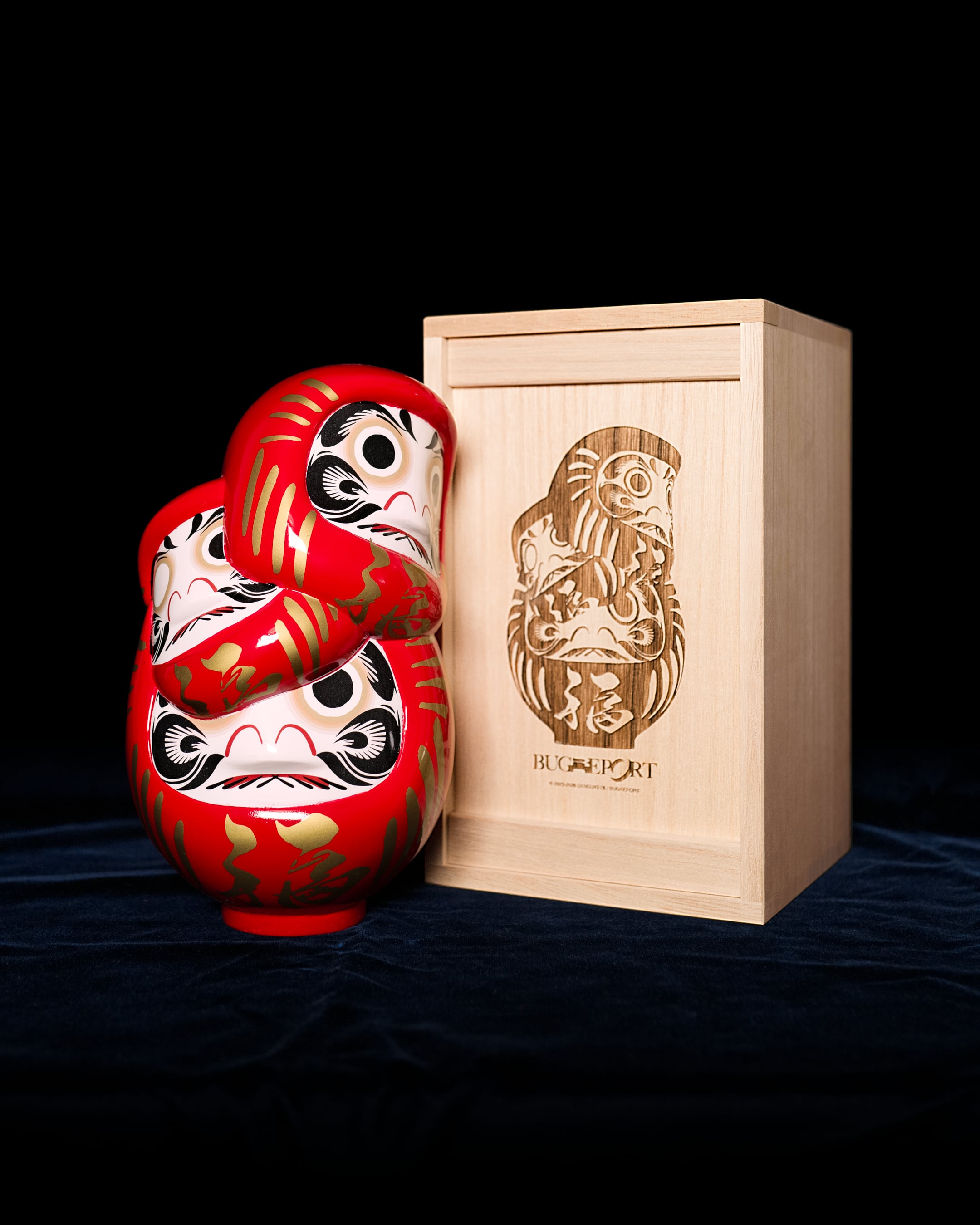 2024年に開催された、アーティスト・DENSUKE28の即売会「BUGREPORT: DARUMA ICHI」で展示・販売されたフィギュア「BUGGY DARUMA」に、オリジナルの収納用桐箱を付けたスペシャルエディションです。